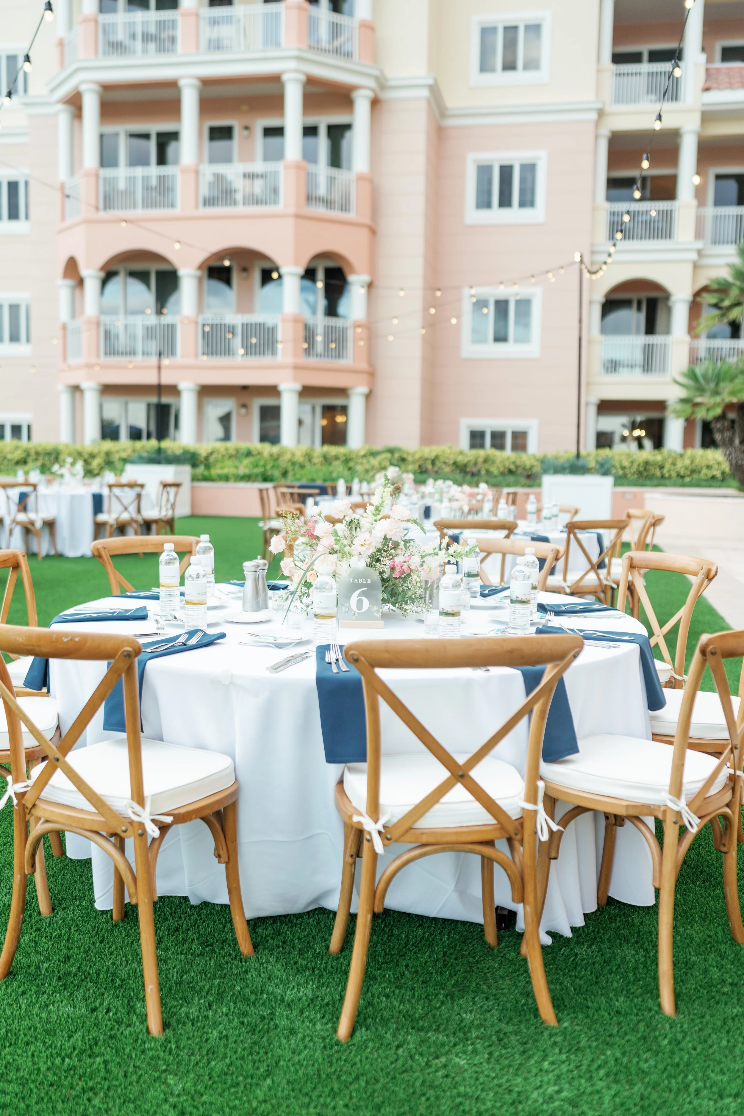 As guests arrived, they were welcomed with refreshing beverages and the soothing tunes of Aaron Esposito, who provided the perfect soundtrack for the cocktail hour and dinner. The anticipation built as everyone took their seats, eager to witness Allison and Jeff’s union. The reception took place on a lush lawn with the stunning resort in the background, creating a serene and intimate atmosphere.